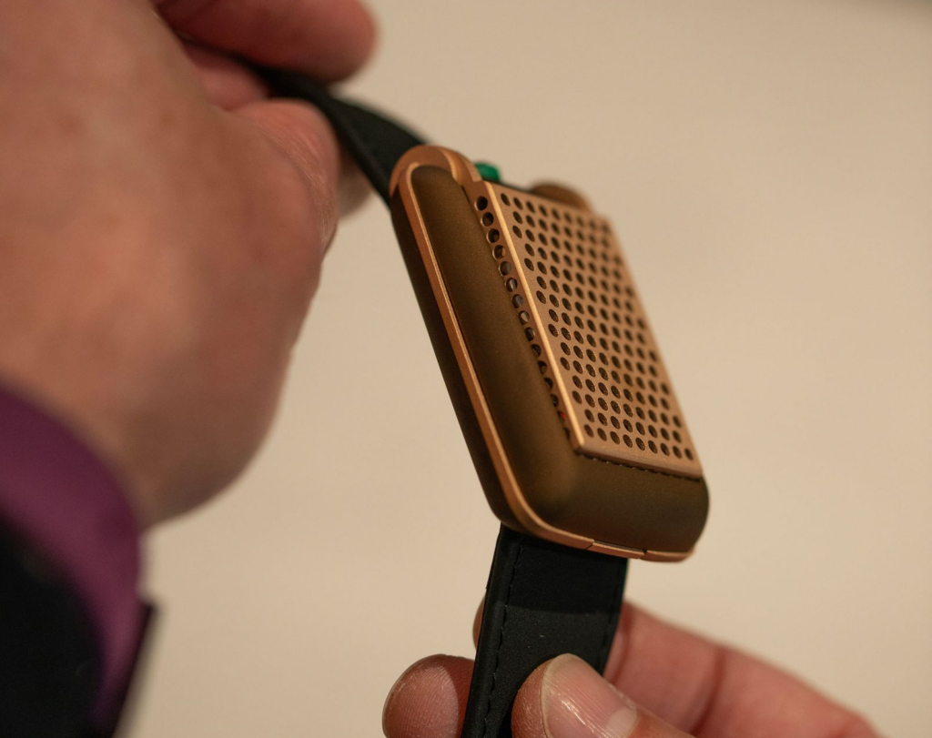 O relógio incorpora elementos visuais marcantes do acessório original, como a tampa articulada e a grade metálica perfurada. Ao ser aberta, essa estrutura revela o mecanismo interno e os indicadores de tempo, reforçando a proposta estética futurista com influência retrô.